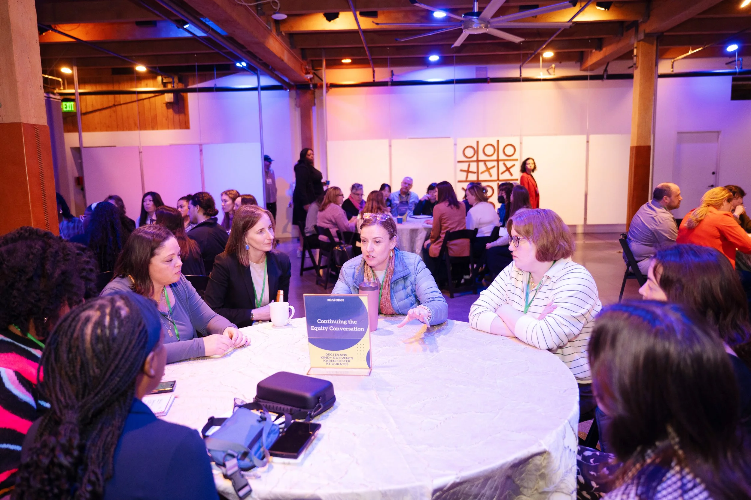 Mini-Chat moment with Karen Foster of KF Curates and Deci Evans of Kind & Co Events talking with attendees on Continuing the Equity Conversation at Mini-CON 2026. Photograph by Barbie Hull Photography.